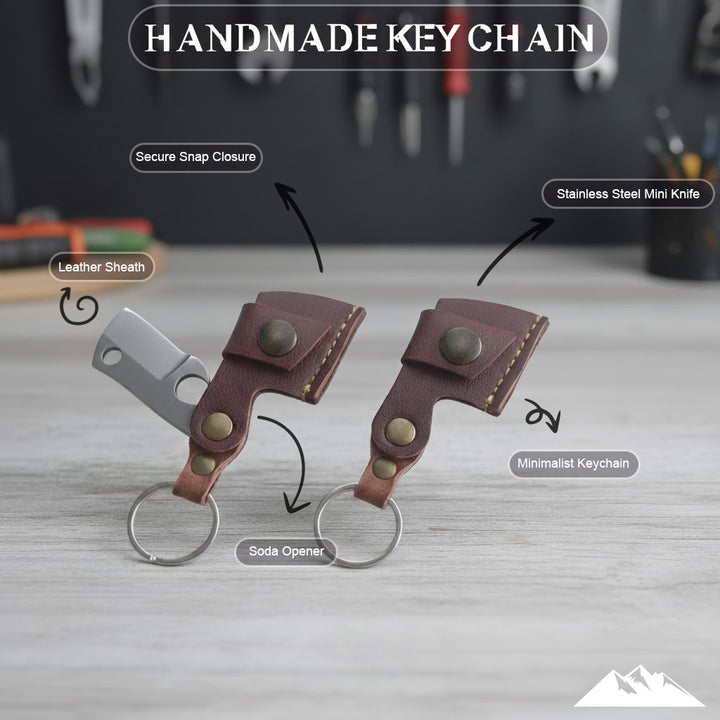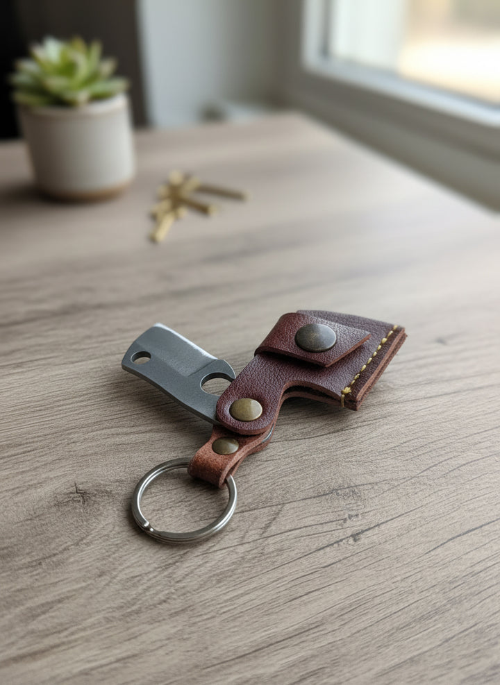 🗝️ Leren Sleutelhanger met Mini Bijlmes – Praktisch & Stijlvol!